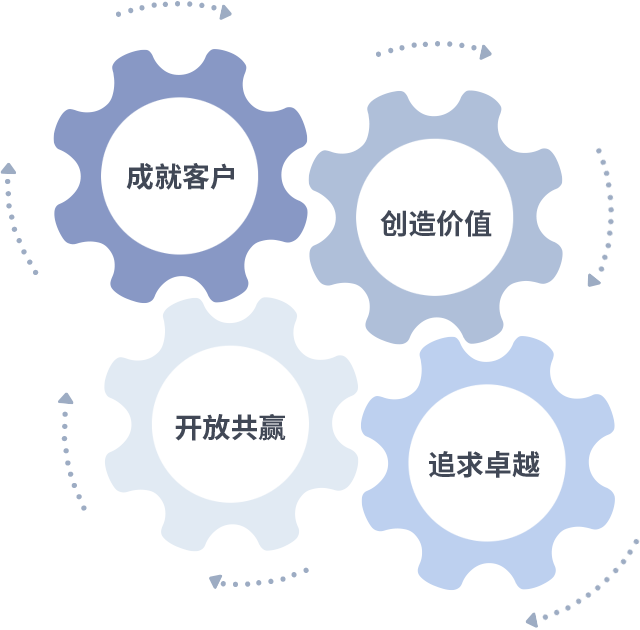 成就客户是一切决策的出发点,创造价值是衡量所有工作的标准,追求卓越是F66永乐做事做人的态度,开放共赢是F66永乐的格局也是最终的结果。价值观的齿轮环环相扣,推动着组织里的每个人不断向前。
